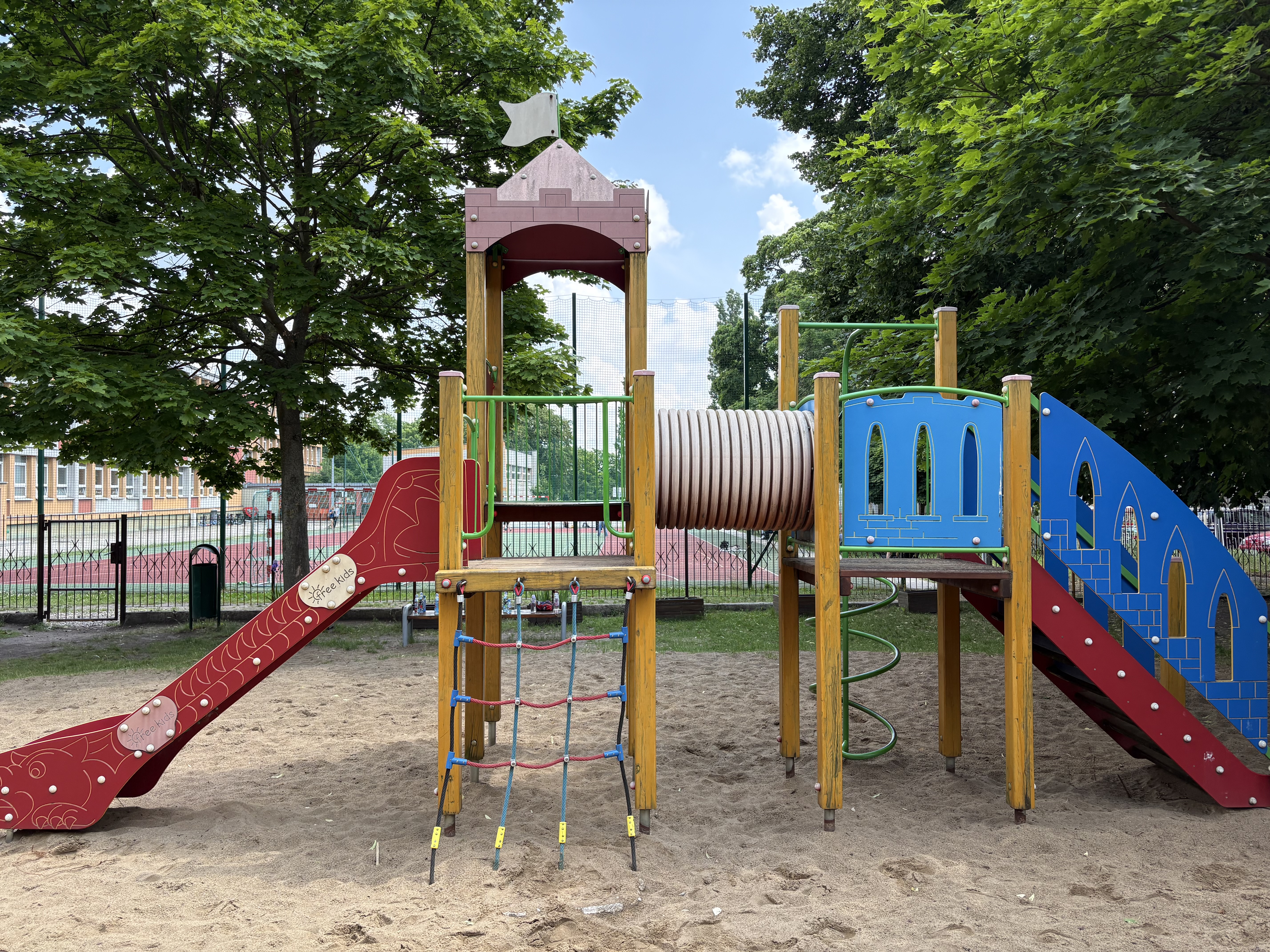 - montaż dużej wielofunkcyjnej konstrukcji z wieżyczkami, zjeżdżalniami i elementami wspinaczkowymi,