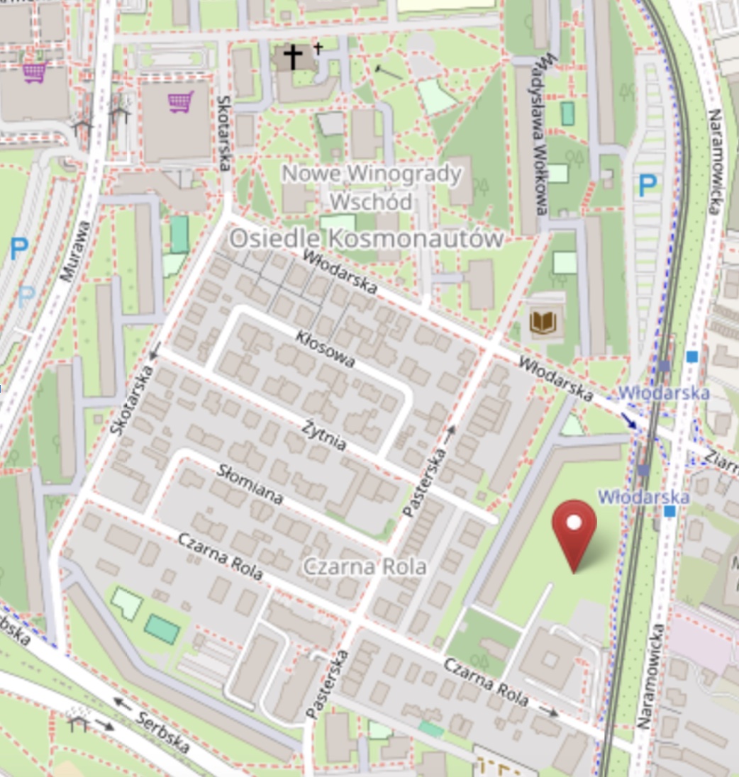 os. Kosmonautów pomiędzy blokiem nr 24 a ul. Naramowicką na działkach obręb 52 Winiary, arkusz 13, działki 43/7, 44/5, 45/5, 48/4 i 98/7 (część, która nie jest oddana ZKZL w dzierżawę)