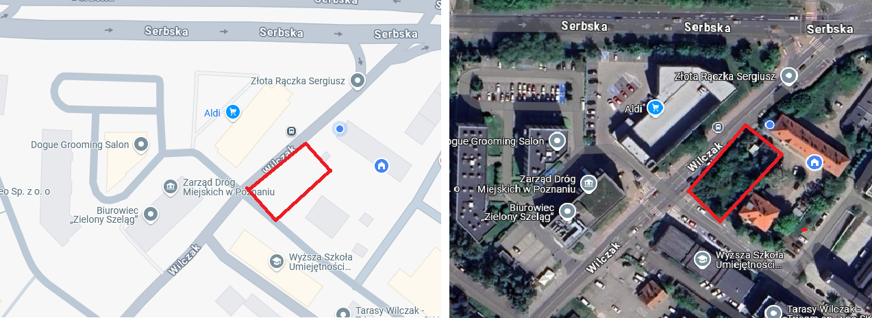 działka na zbiegu ulicy Wilczak/ Wilczak około numeru 22 o wymiarach ok 20 x 40 m (~800 m2)